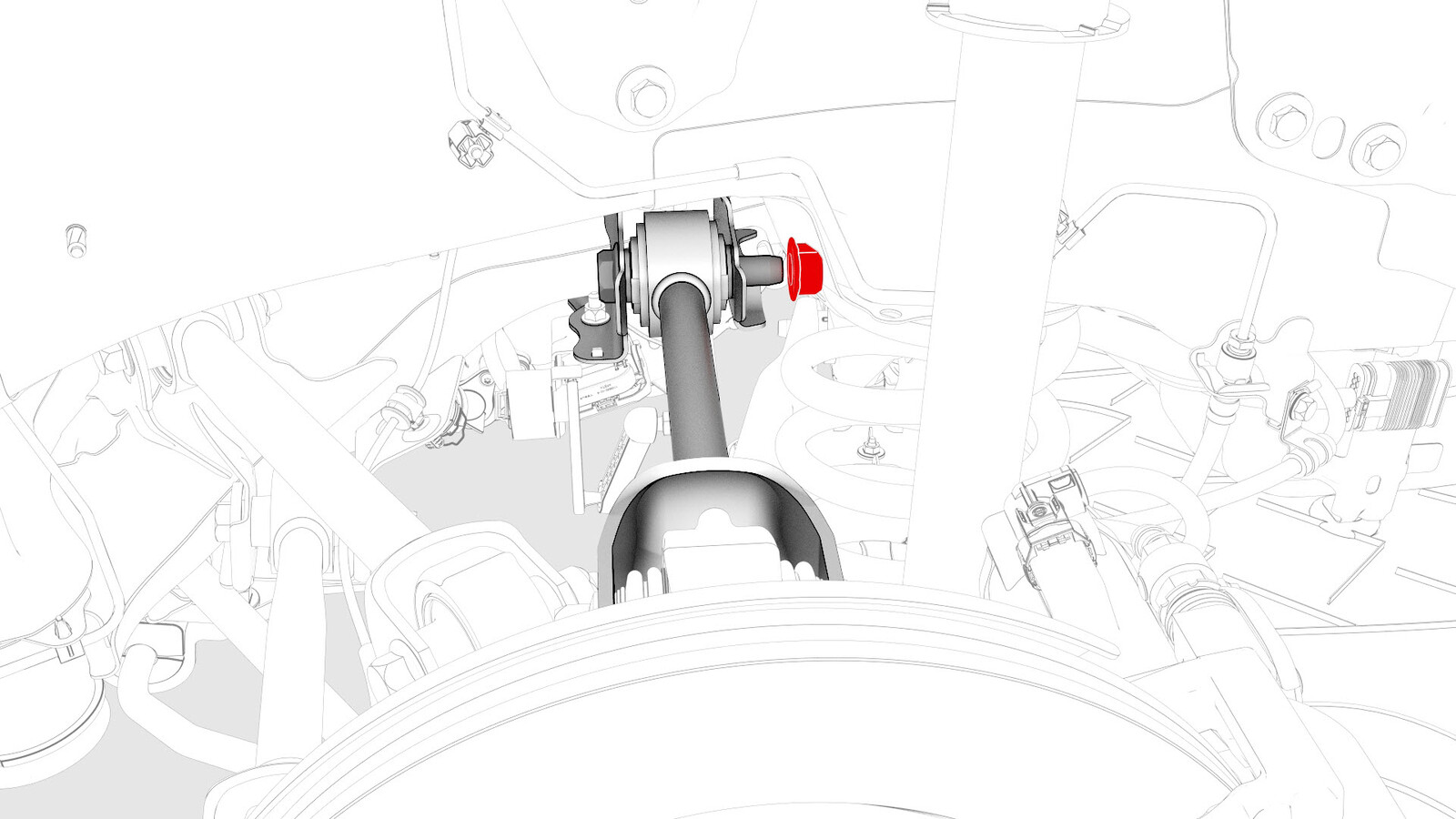 | 将左侧后上部尾连杆固定到转向节的螺母 |