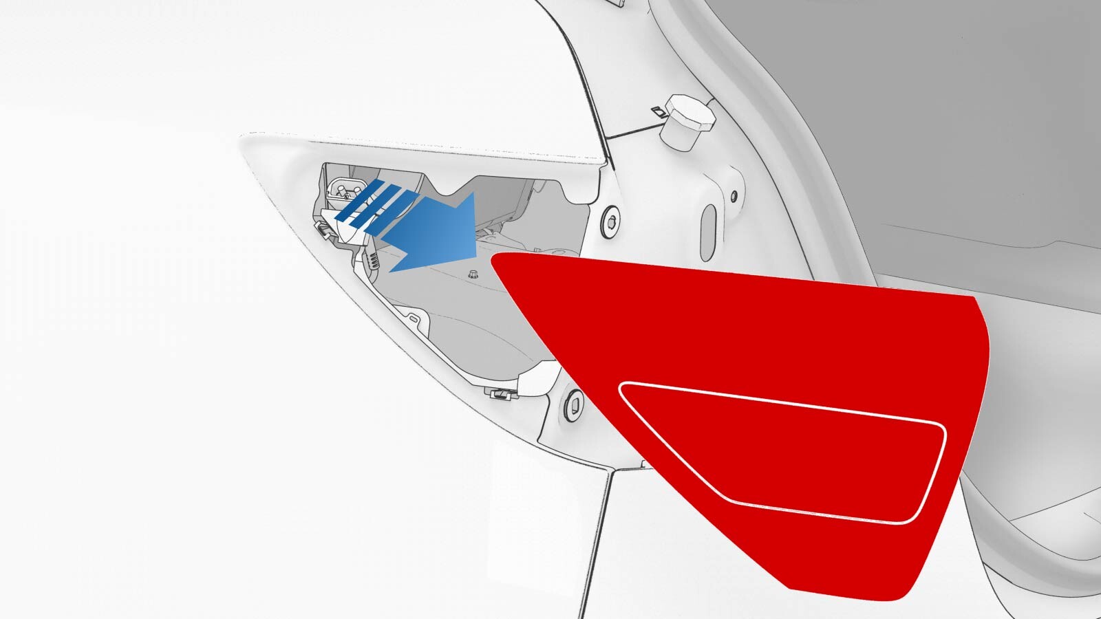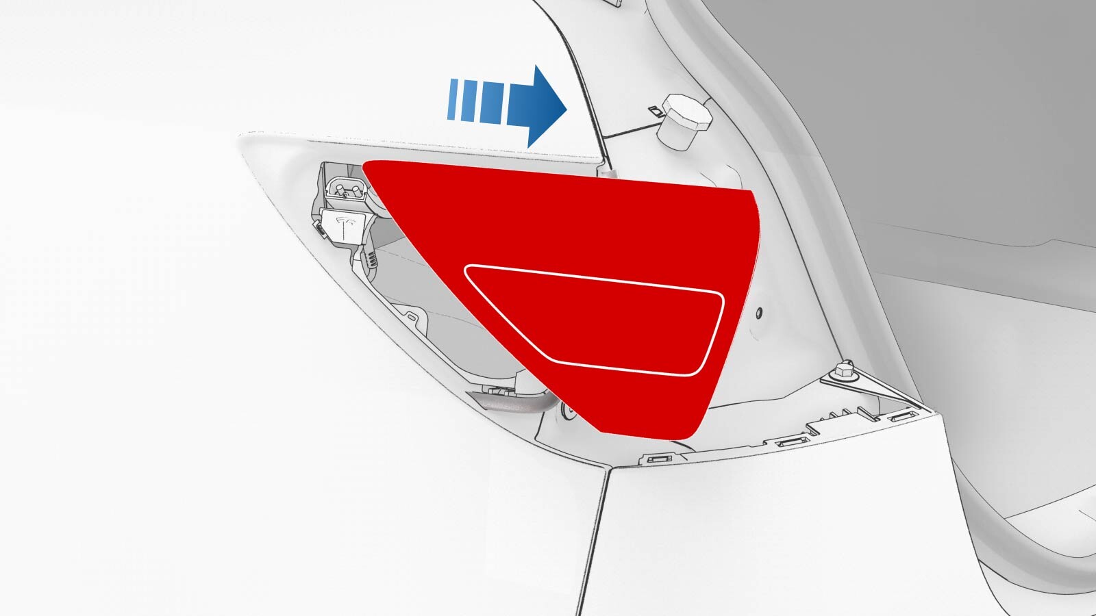 - 松开后备箱地毯的边缘,然后将后备箱左侧饰板移至一旁。