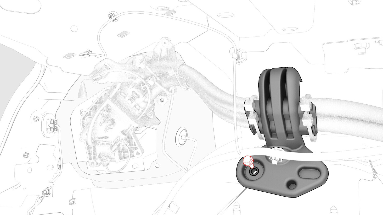 安装将充电接口线束支架和接地线固定到车身的螺栓。
