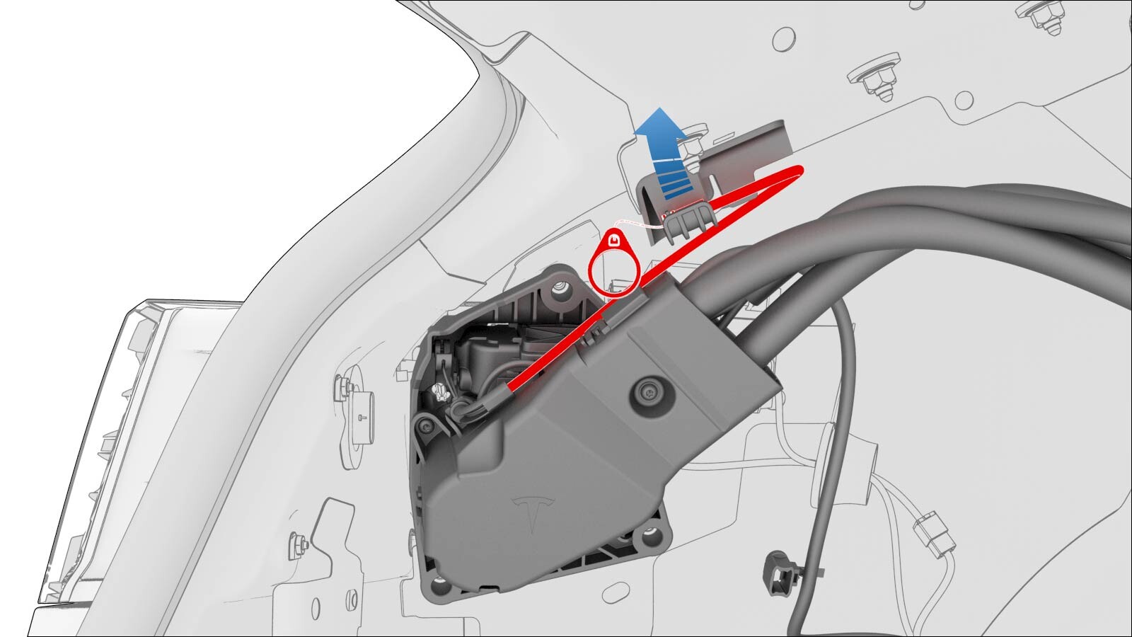 将手动释放缆索向上拉离缆索固定夹,或者将缆索垂直向上拉离充电接口总成。