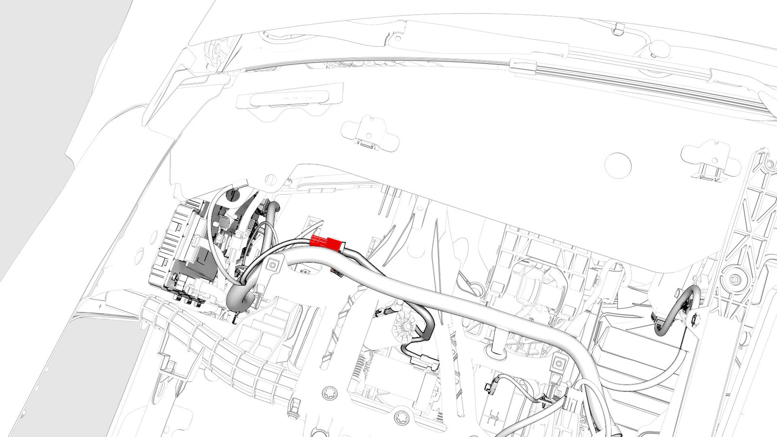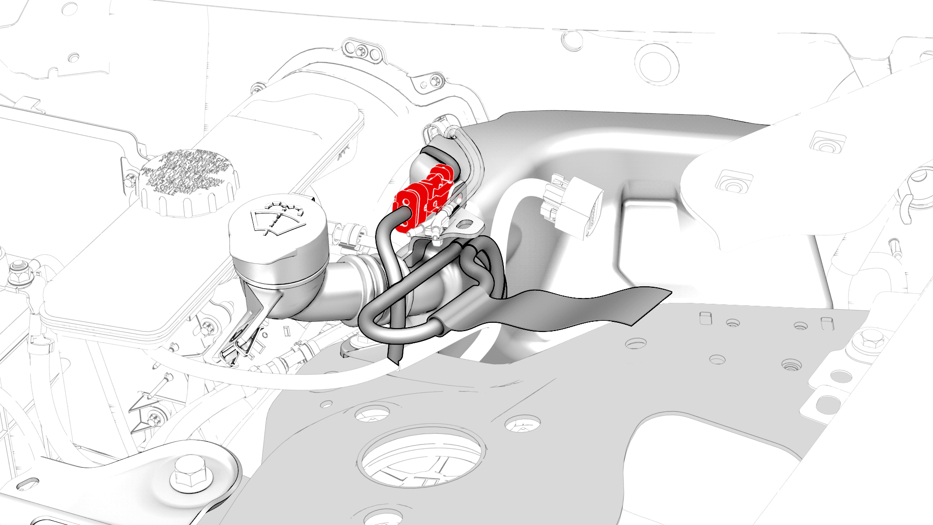 松开将电气线束固定到挡风玻璃清洗器储液罐的夹子。