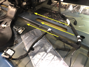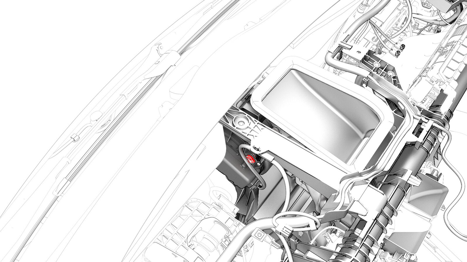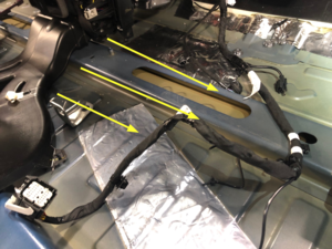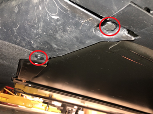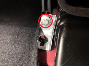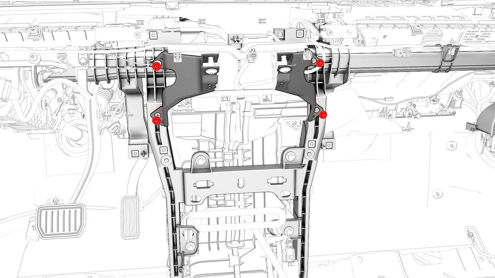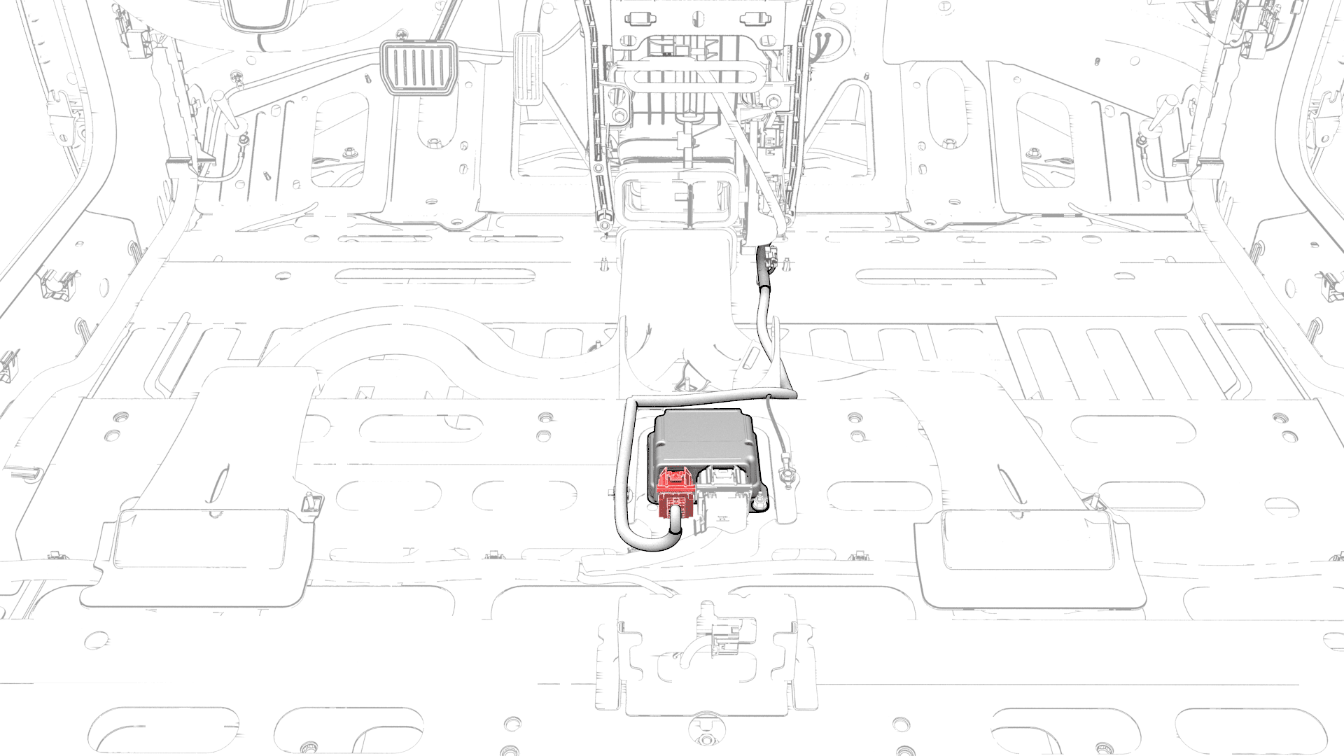 - 拆卸左侧脚部空间进气槽。请参阅#GUID-4B963839-927B-422B-B1BC-81666CE43923。