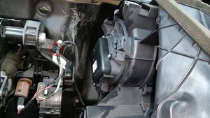 将仪表板线束连接到到 HVAC 风扇总成电机连接器。