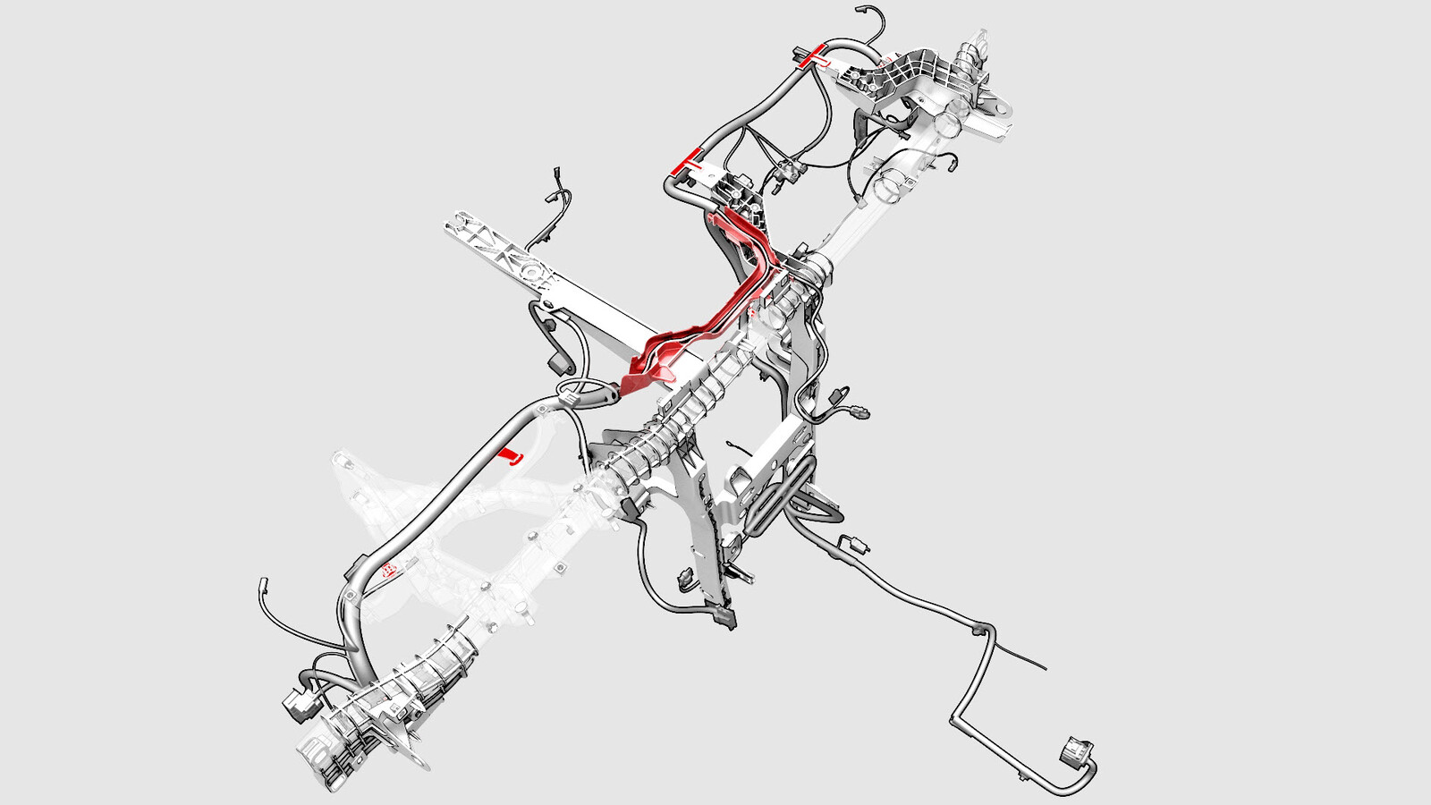 松开将仪表板电气线束固定到横梁的夹子,然后从横梁上拆下仪表板电气线束。