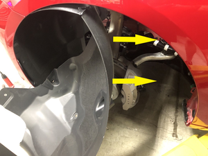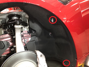 注拆卸之前用于紧固左前轮拱的 2 个卡子。