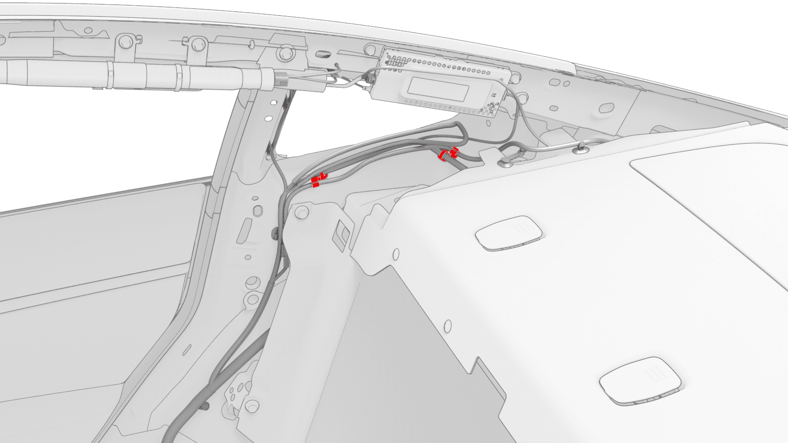 - 拆卸右侧 C 柱上饰板。请参阅#GUID-CA7062E0-67B6-4F6E-8E04-41149EBDB913。