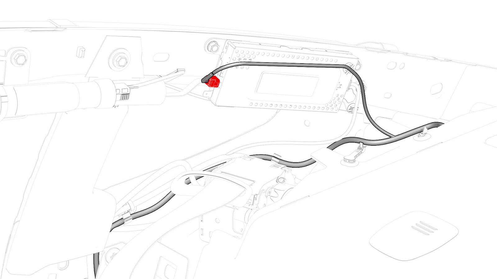 将杂物盘线束连接器连接到右车身电气线束。