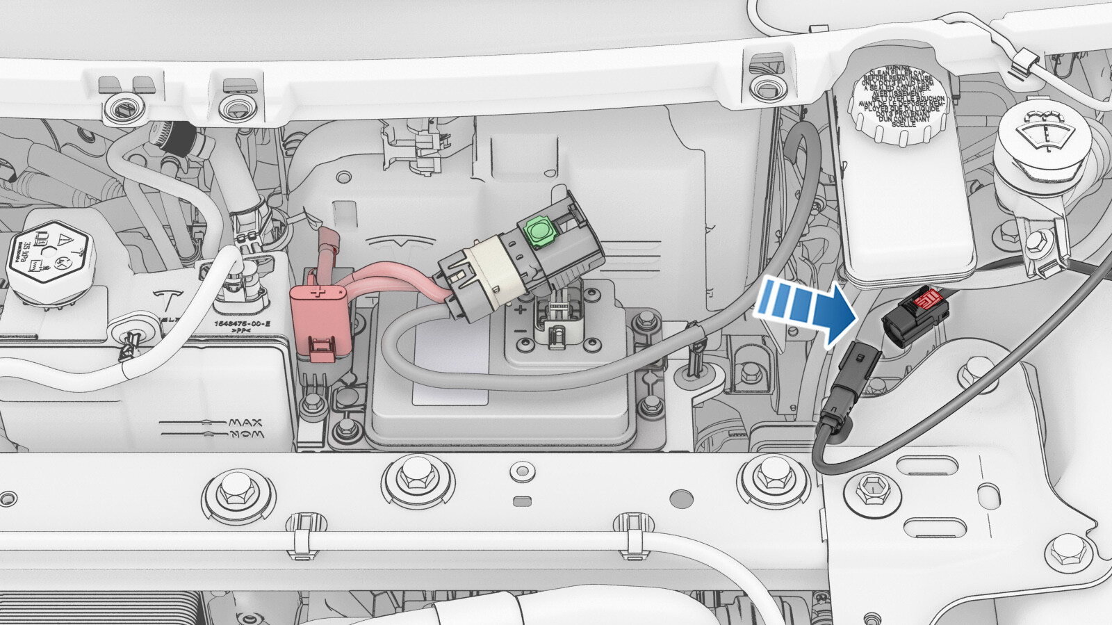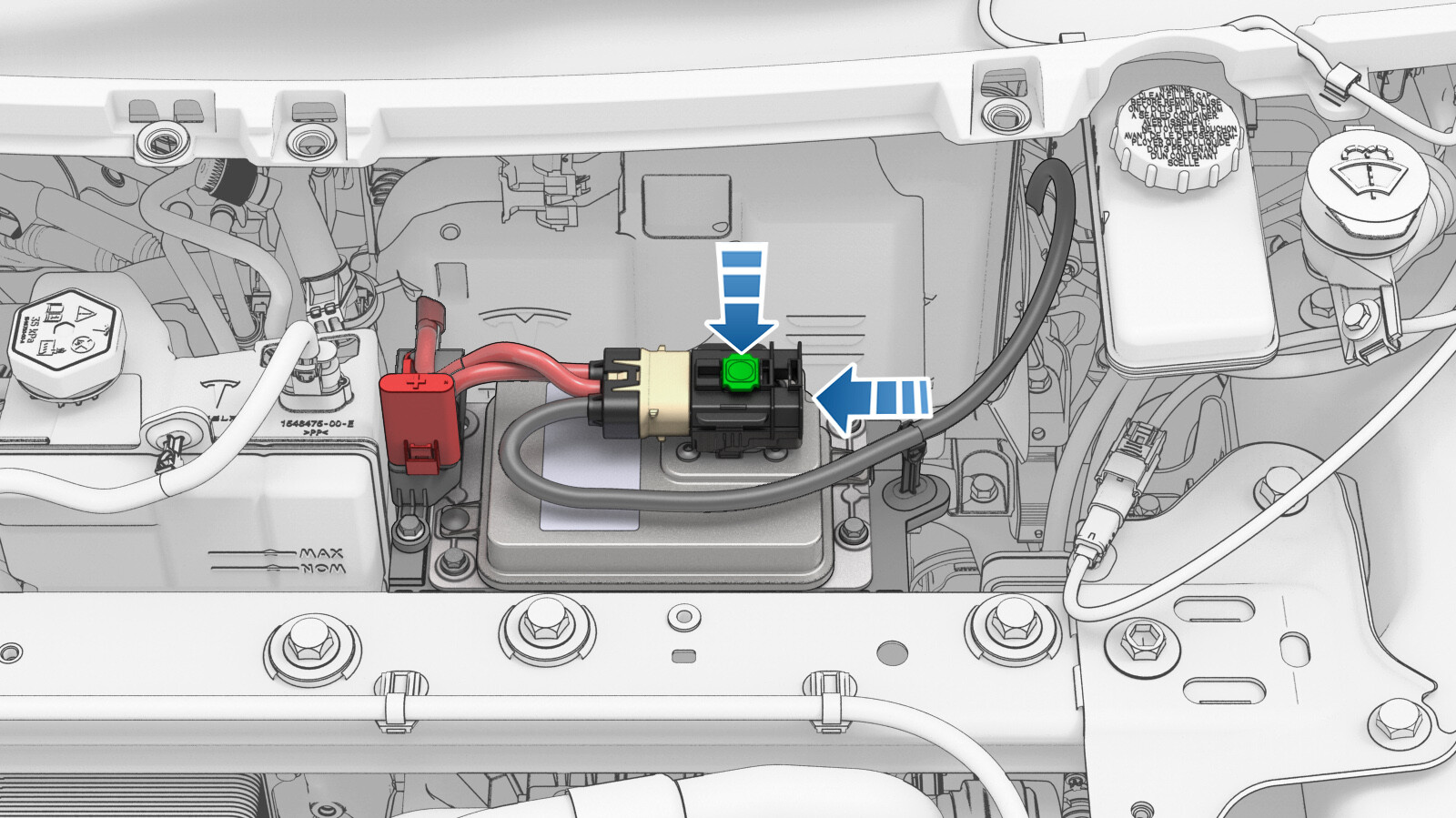 - 如果已断开低压电源,以维护某一高压部件,请确认该部件已无法再使用高压电源。请参阅 车辆高压禁用程序。