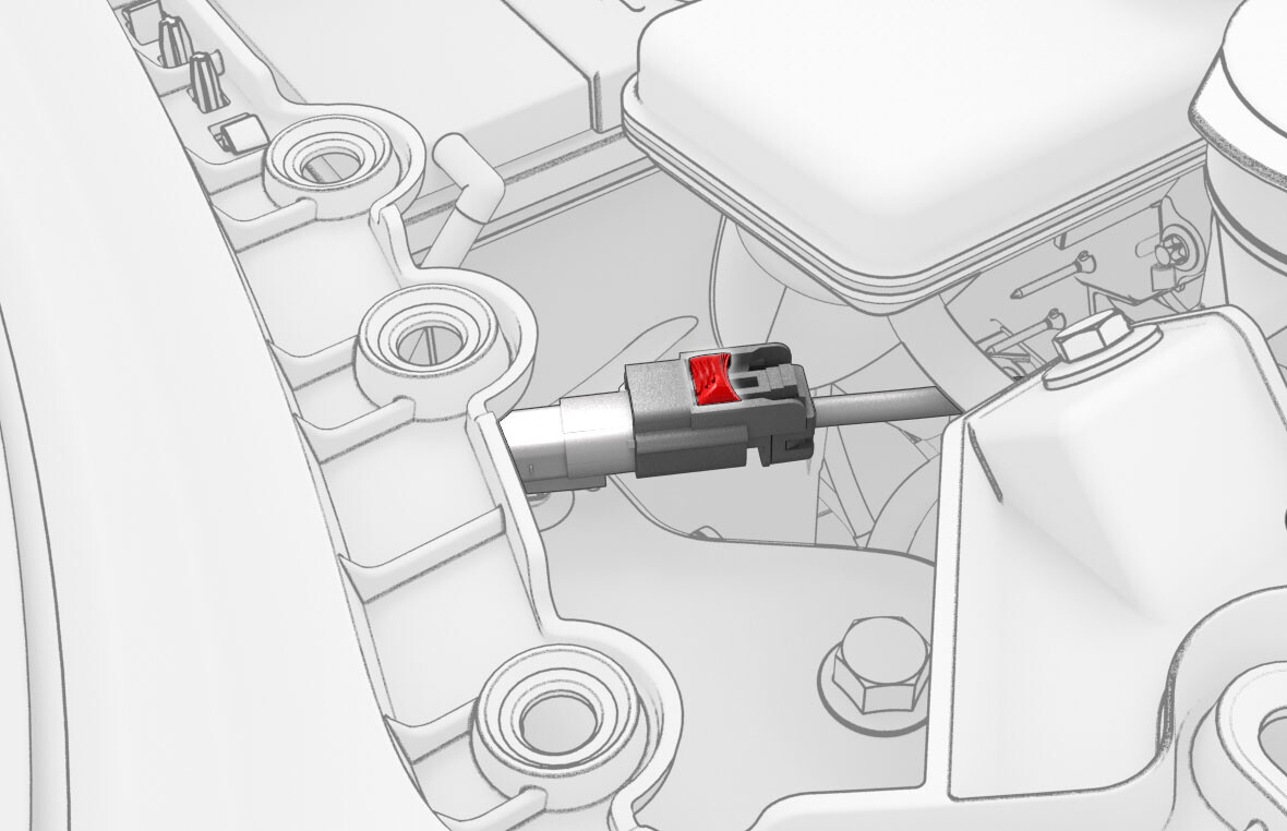 连接紧急响应回路,然后向前滑动红色锁片以锁定连接器。