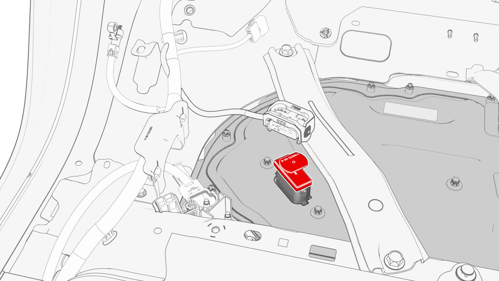 找到 12V 辅助电池 右侧旁边的紧急响应回路。
