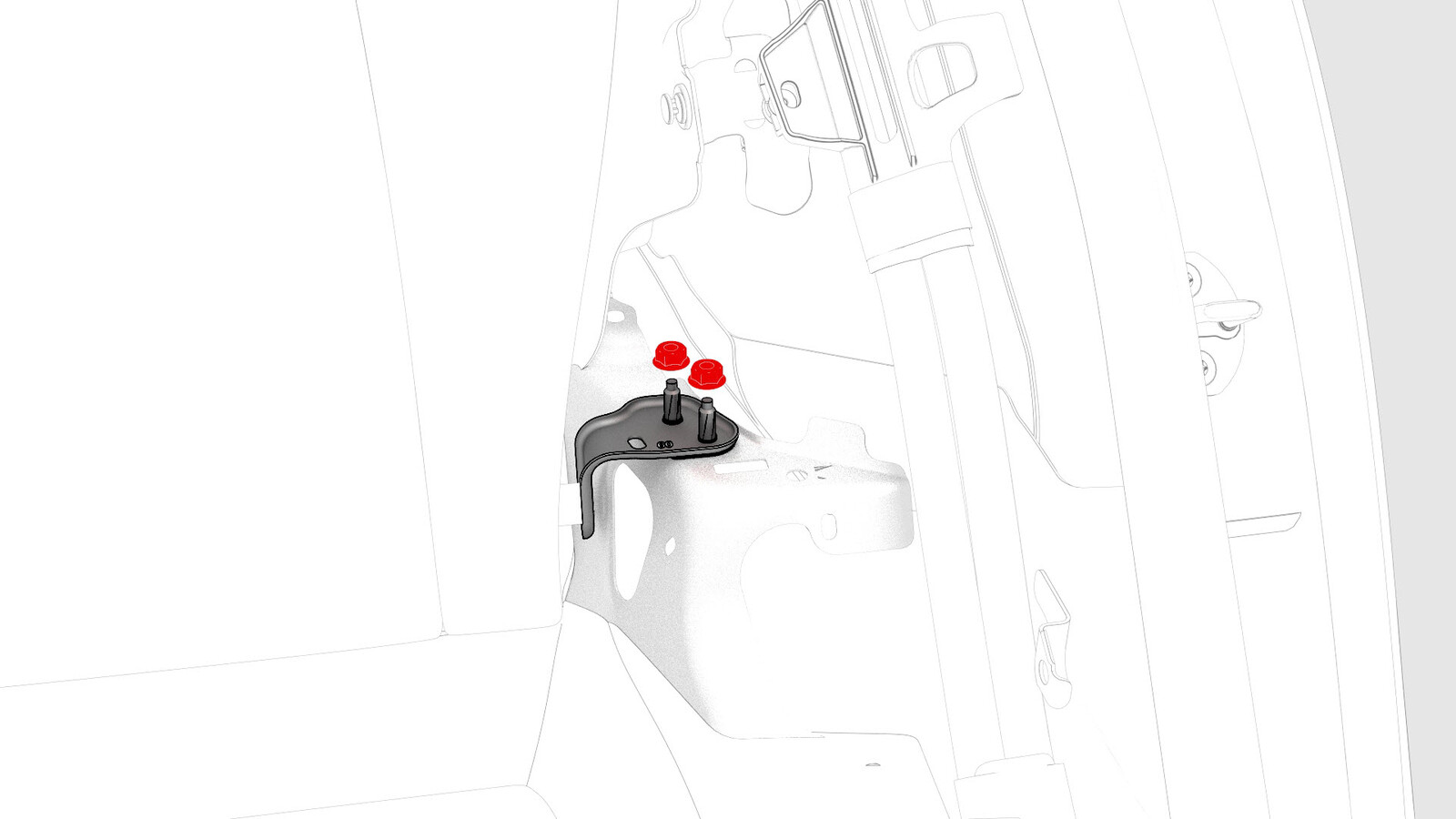 安装新的螺栓,将第二排左侧锁扣固定到车身。