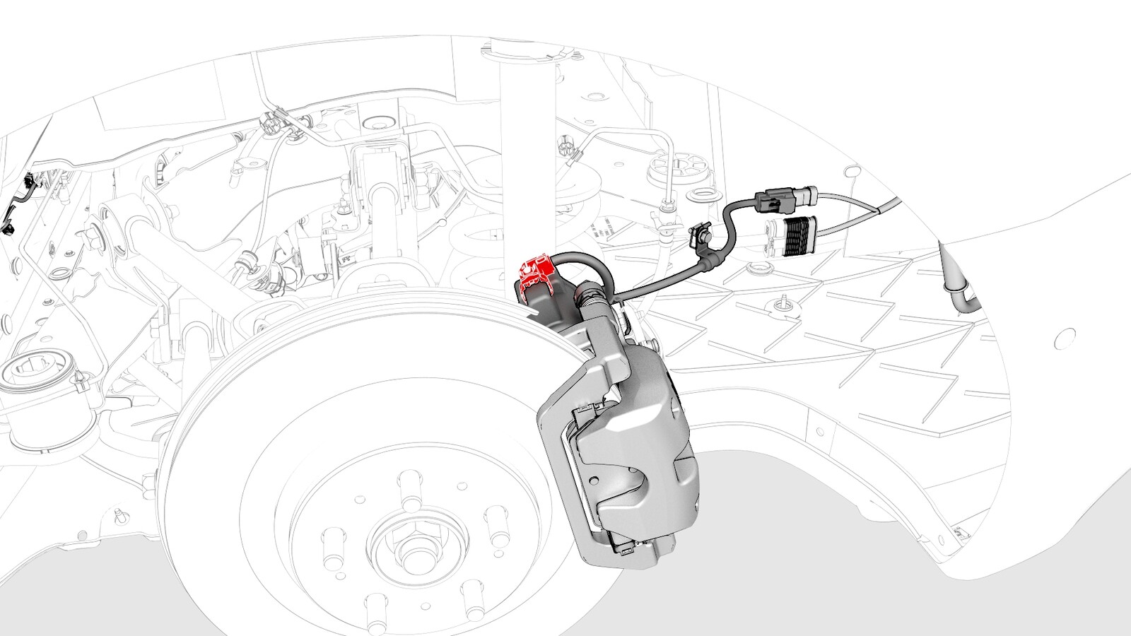- 将电气连接器连接到左侧后制动钳。