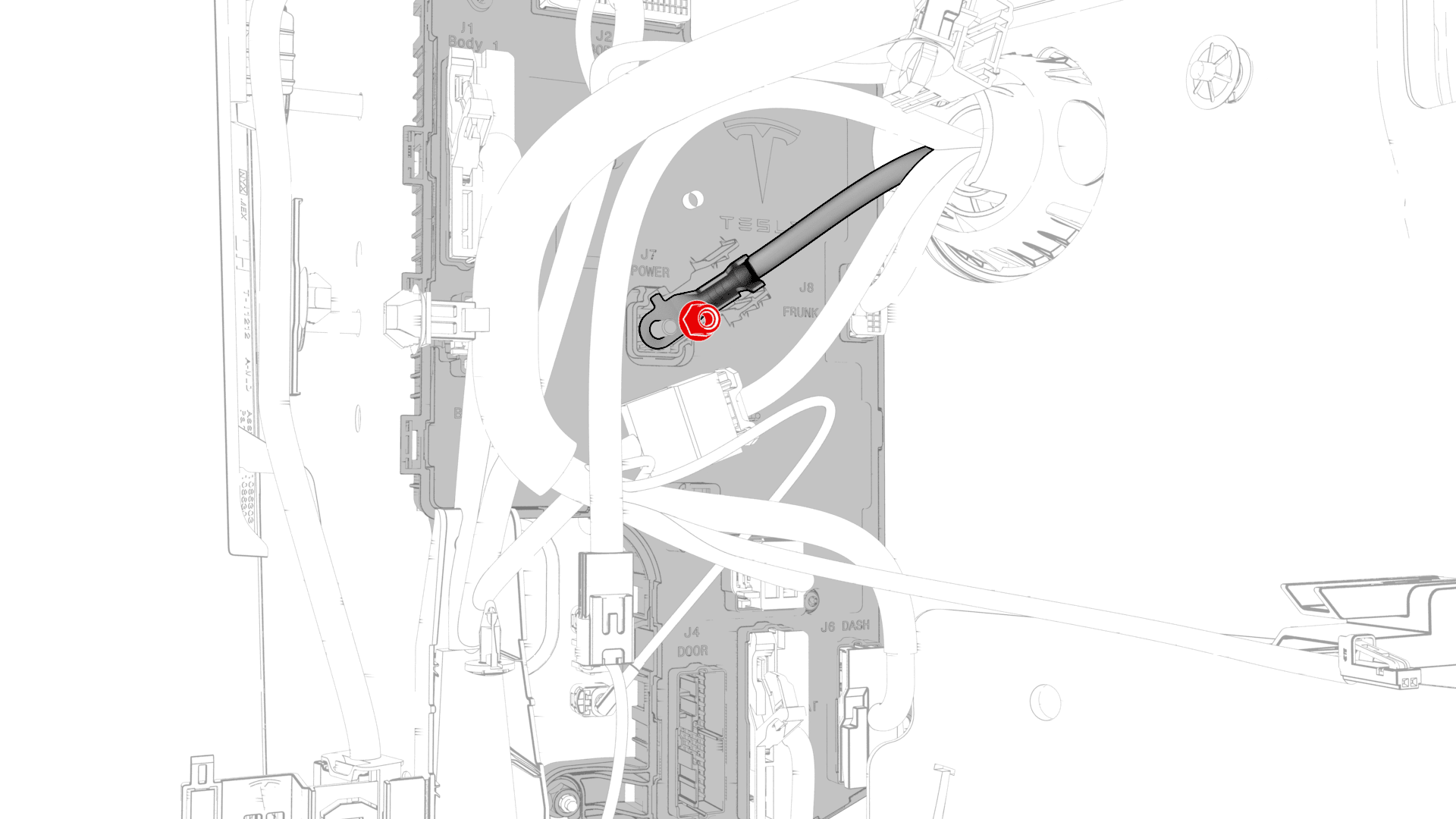 | 将 12V 电缆固定到左侧车身控制器模块的螺母 |