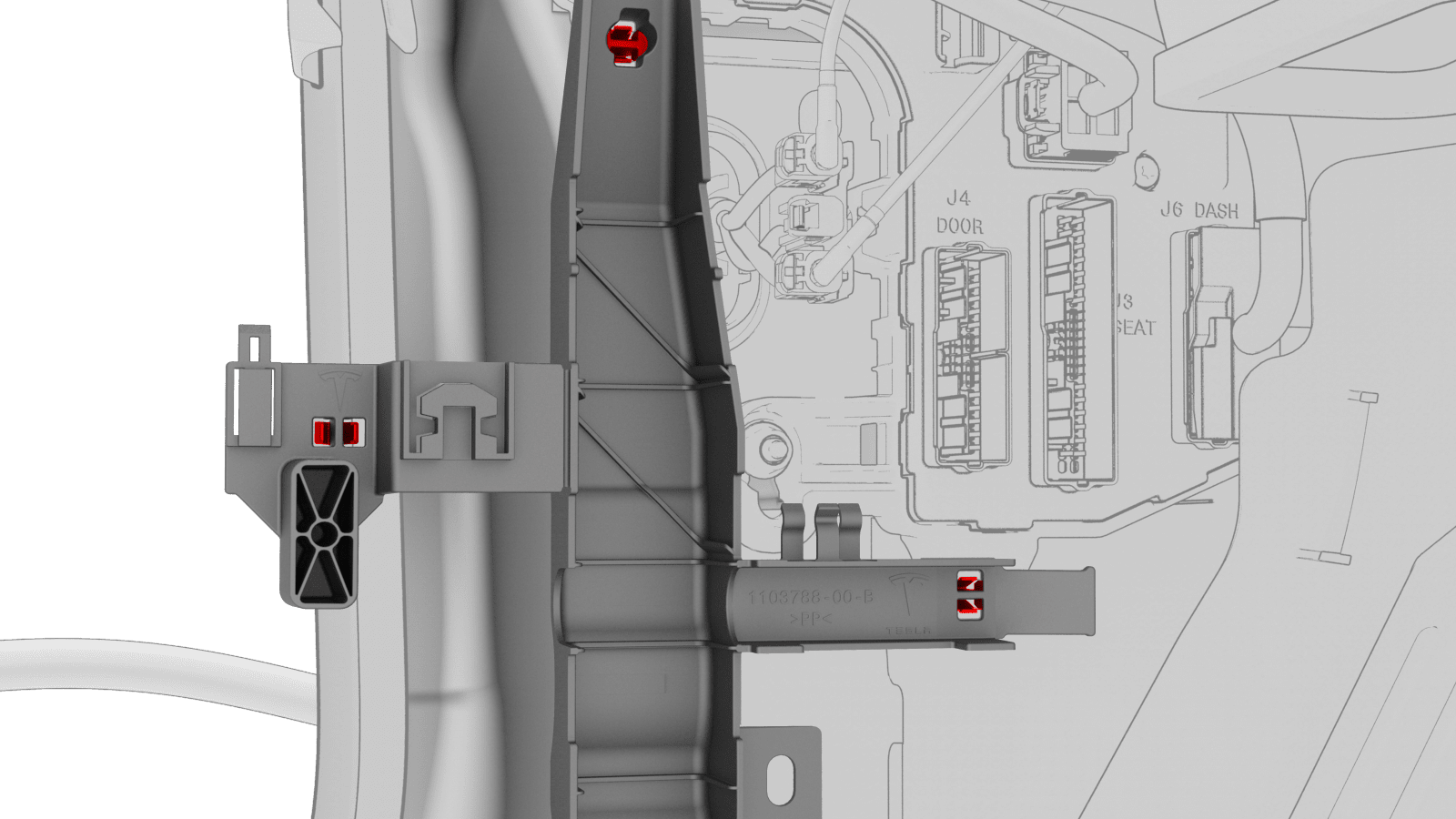 连接将左前车门电气连接器固定到左侧车身控制器模块的卡子。