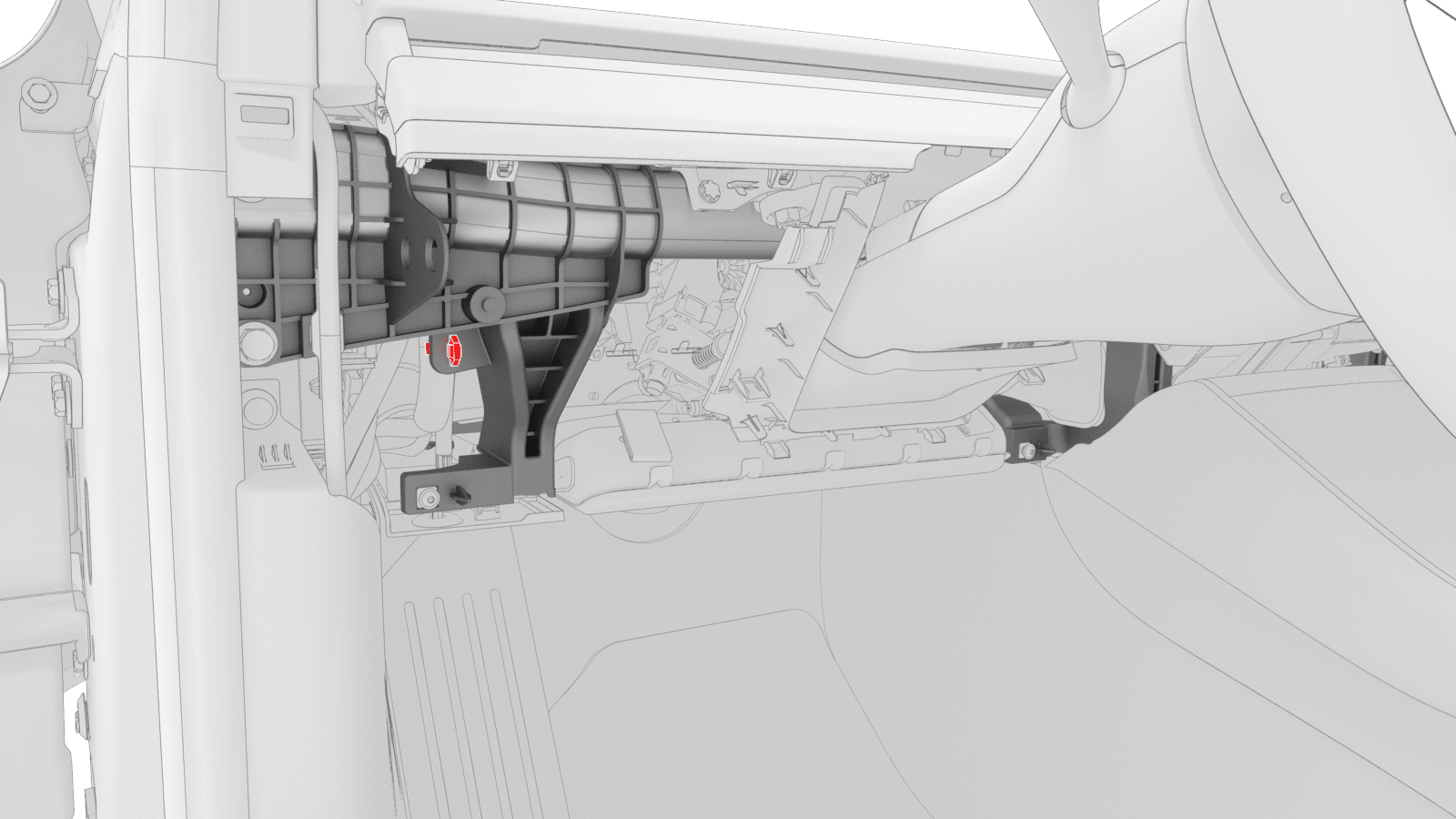 - 拆卸驾驶位膝部气囊。请参阅 #GUID-C71DB12A-5A3F-419B-93DF-72A431BC4F2C。