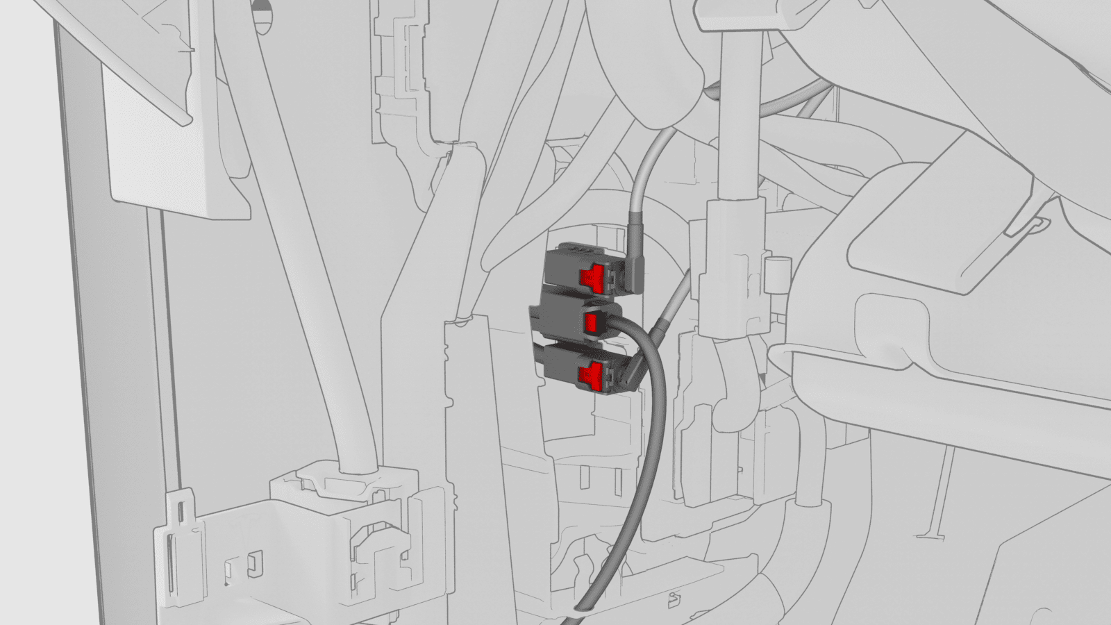 松开将电气线束固定到仪表板支架的夹子。