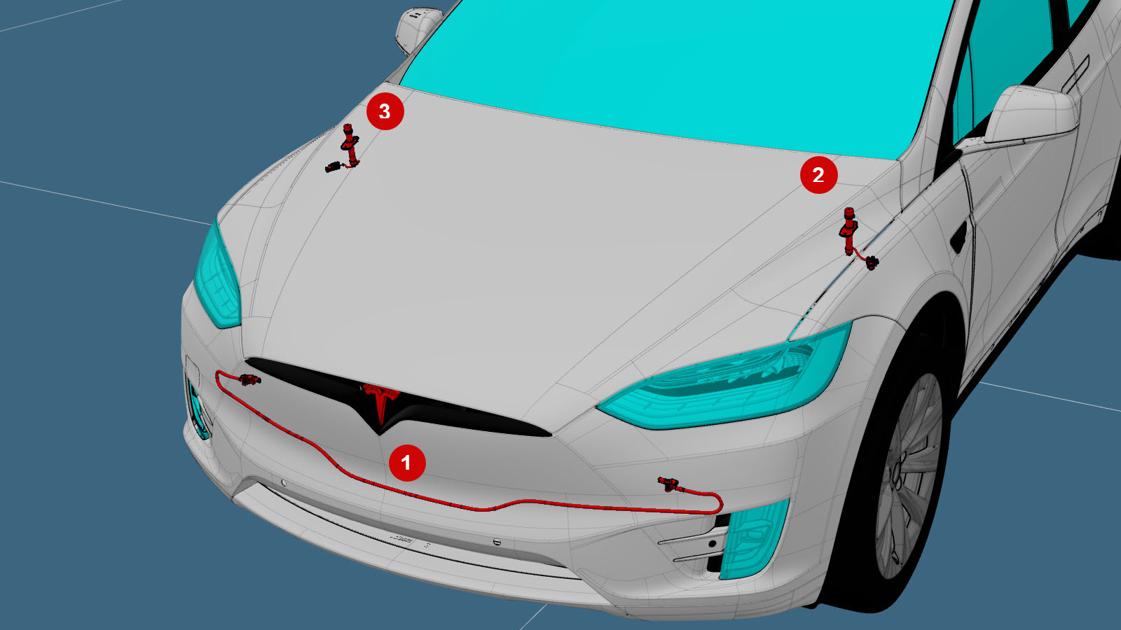 Model X 2025+ Model Y L vehicles are equipped with Pedestrian Protection components such as a pressure sensing tube, and hood actuators.