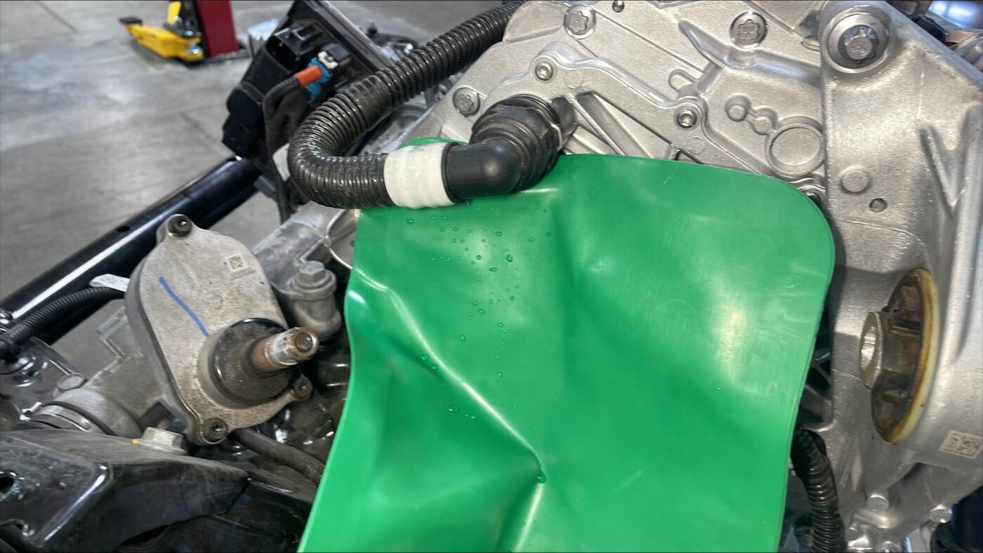 - Remove the coolant drain container from underneath the vehicle.