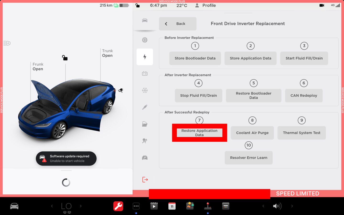 - Run PROC_PMF_X_STORE-DATA-BOOTvia Service Mode Plus:Drive Inverter ➜ Front Drive Inverter Replacement ➜ Store Bootloader Datavia Toolbox:(link)