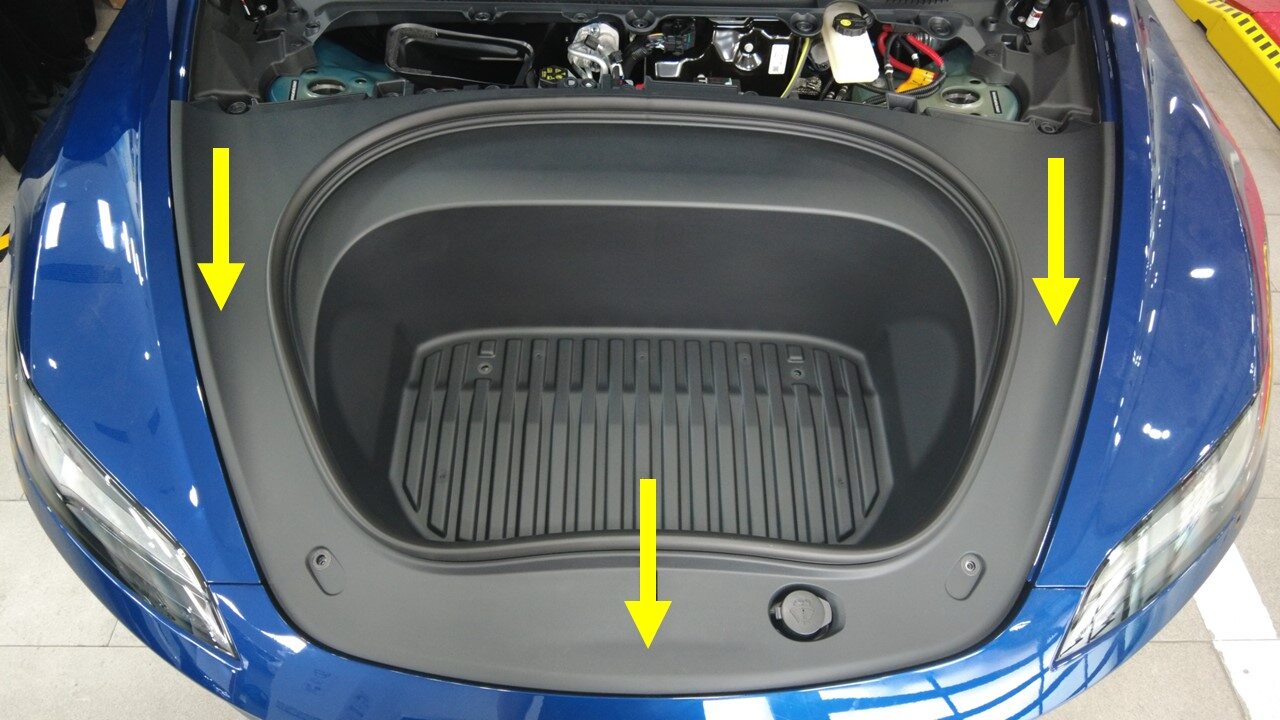 Note14x clips, Hold rear wall of frunk to keep from flexing while engaging front clips