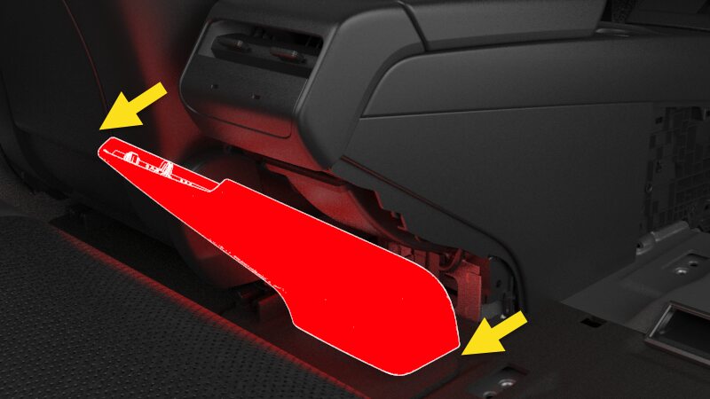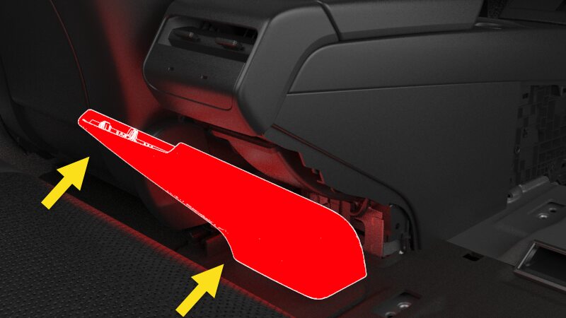 NoteThe passenger seat cannot be fully adjusted out of the way from the RH rear 10mm bolt. Removing the RH side bolt requires a 10 mm combination flex wrench - Move both front seats backward.