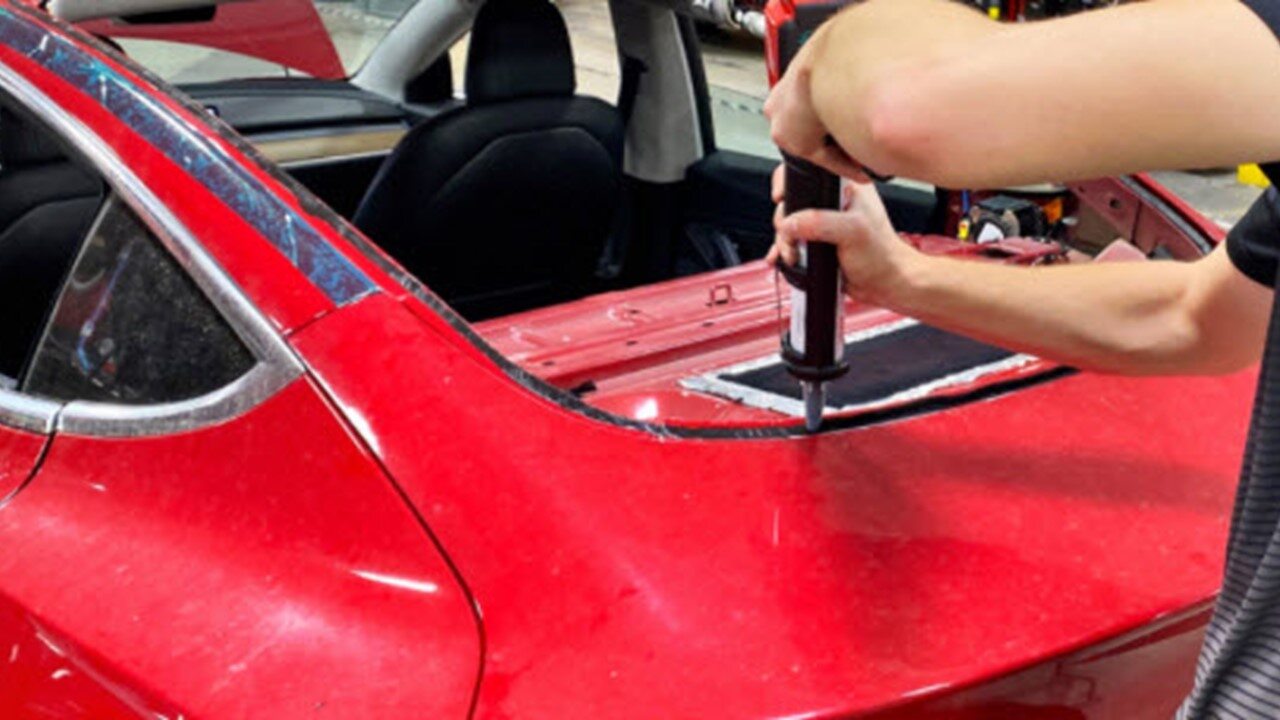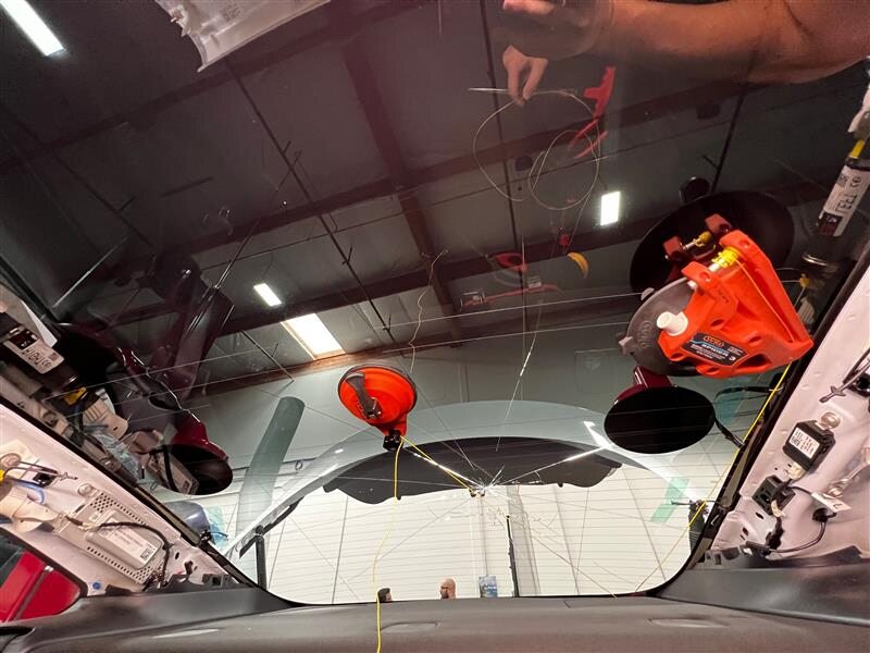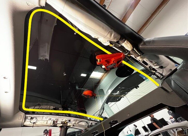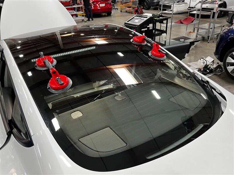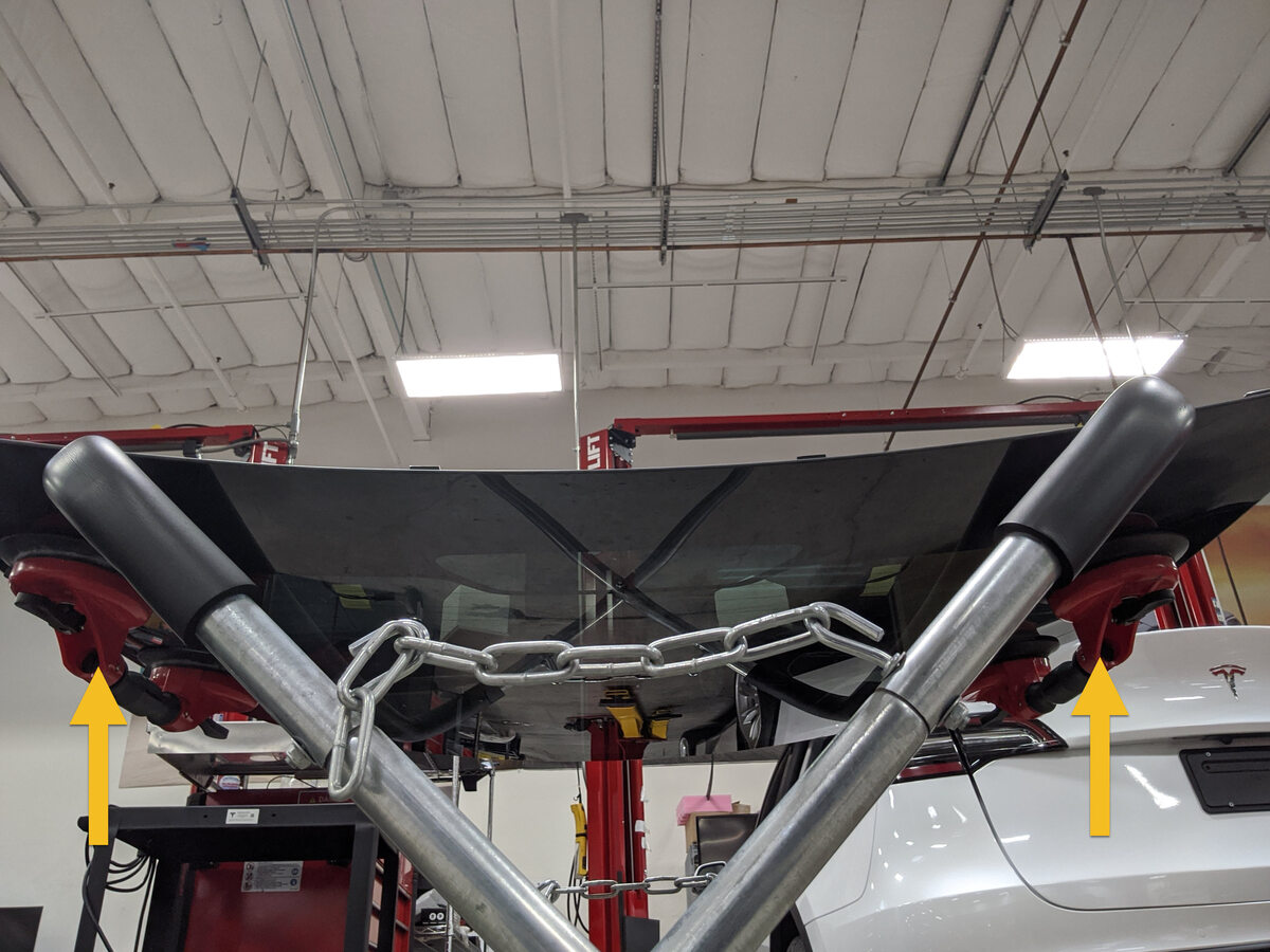 DANGERUse an assisted lift whenever lifting the glass.NoteUse suction cup handles (x2).TIpLift up on the glass from the interior of the vehicle to ease removal. Lower the trunk right before latching.