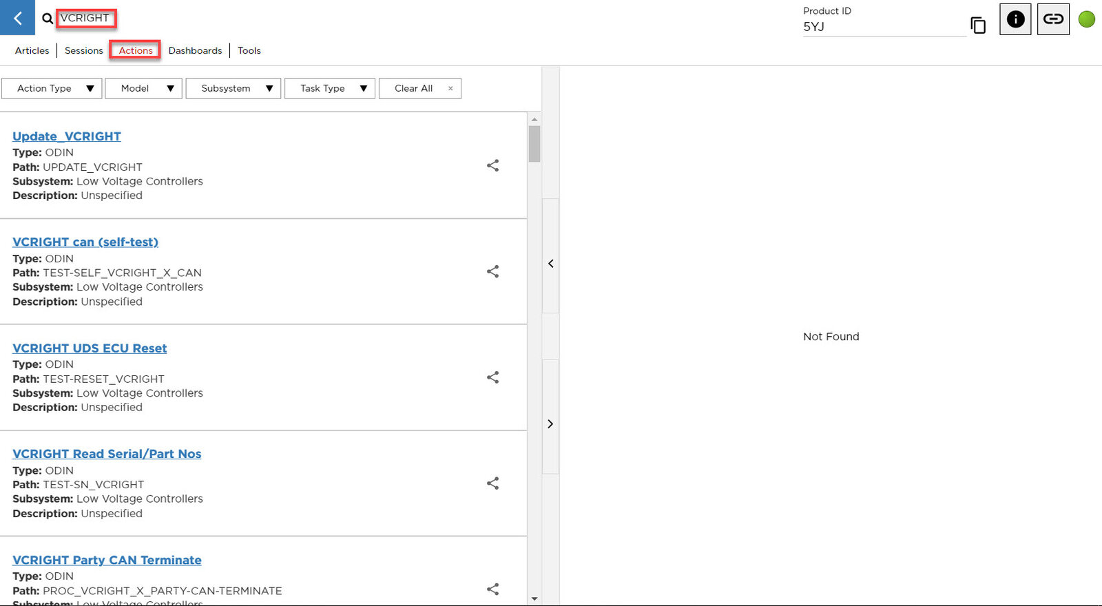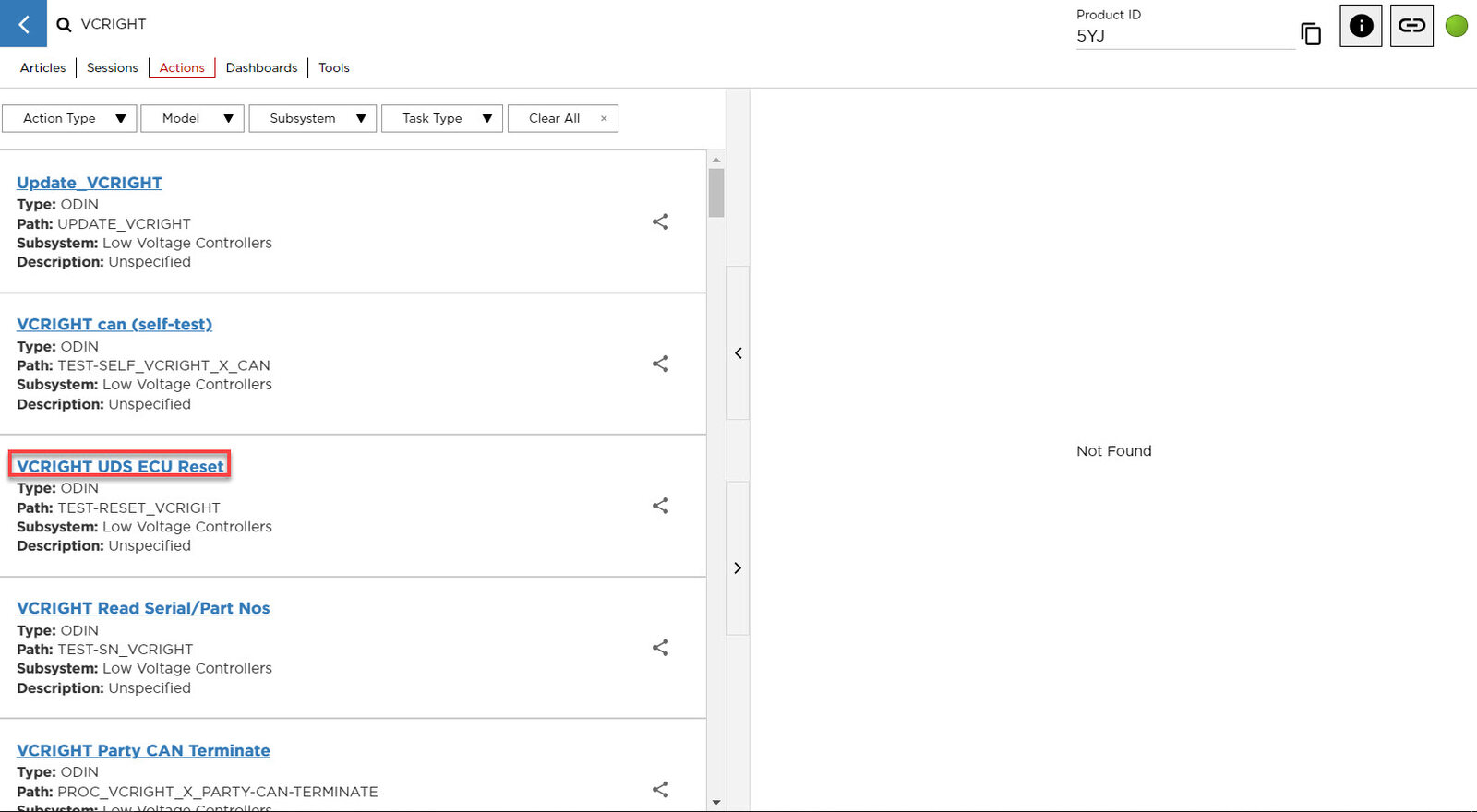 Actions/Autodiag tab and search for ‘VCRIGHT’.