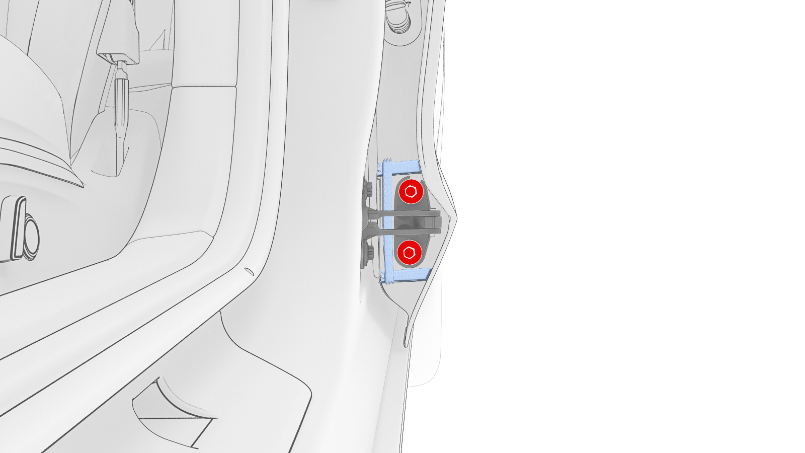 | Bolts (x2) that attach the LH rear lower door hinge to the door |