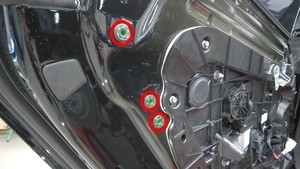 | Screws (x2) that attach the LH rear door panel to the LH rear door |