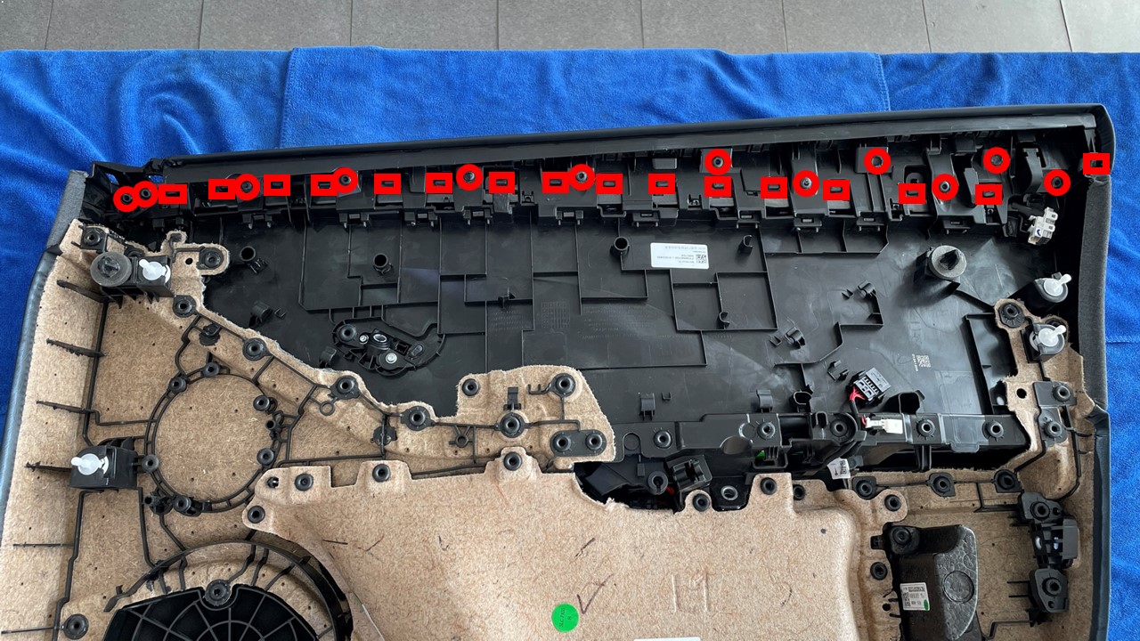 heat staked tabs for the LH front door panel.