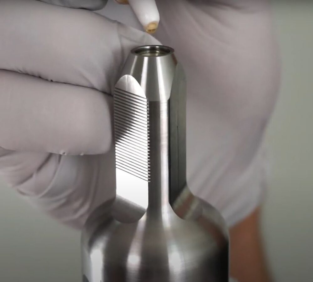 Push in the injector until the white seal touches the glass, and then push 1 to 2 additional clicks to ensure a proper seal.