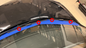 - Apply tape to the windshield directly above the washer blades to help positioning the washer nozzle target points.