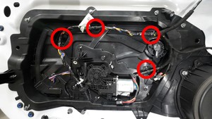 | Screws (x5) that attach the LH front window motor to the LH front door closeout panel |