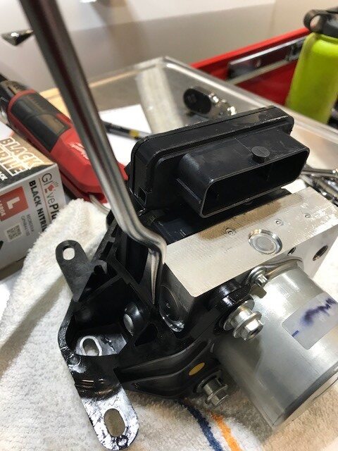 Release the master cylinder brake lines from clip at rear of hydraulic control unit bracket