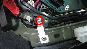 | Nut that attaches the DCDC ground busbar to the HV battery |