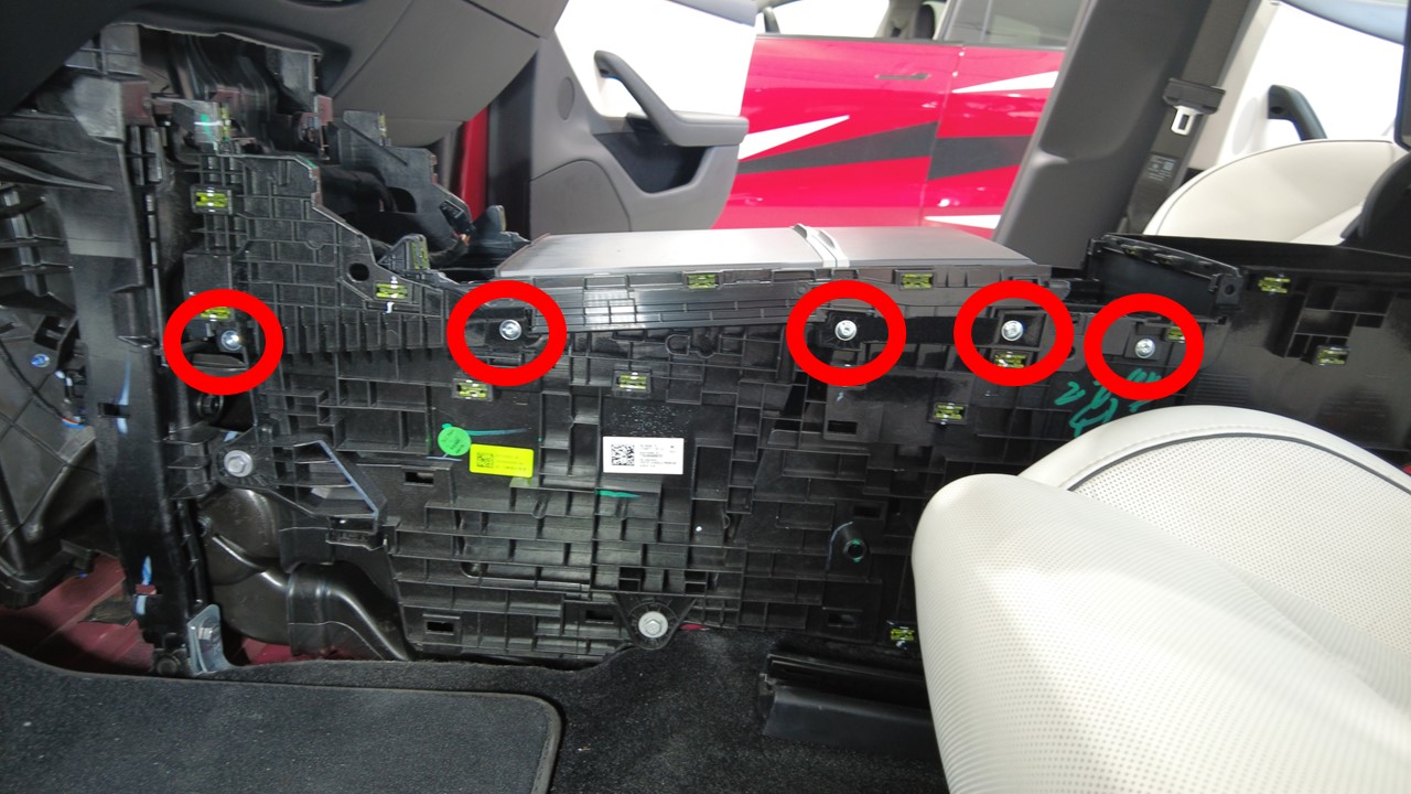 | Screws (x10) that attach both sides of the sliding bin lid to the center console |