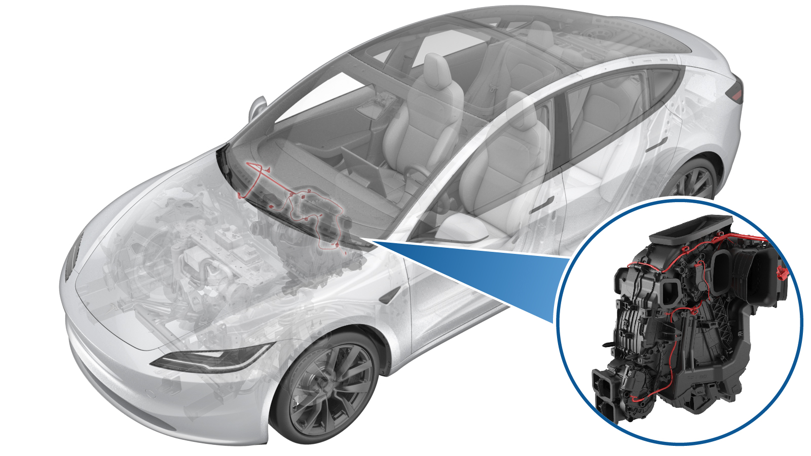 HVAC harness to the upper right of the HVAC assembly.