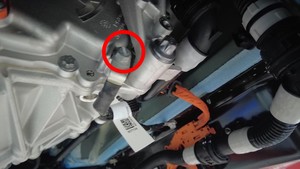 | Bolt that attaches the front drive unit HV harness to the front drive unit. |