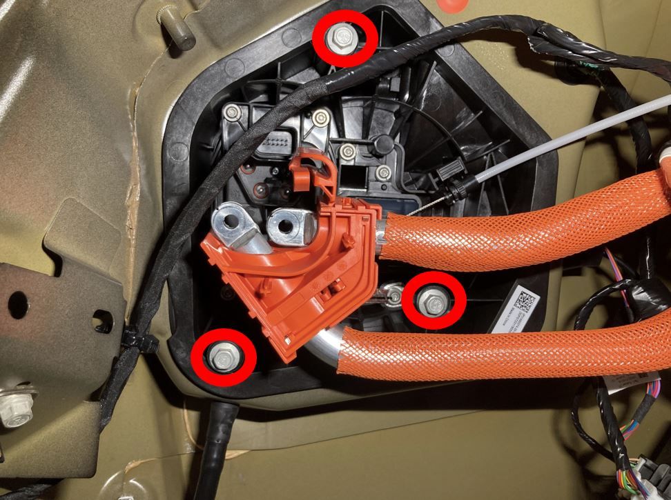 | Bolts (x3) that attach the charge port assembly to the vehicle |