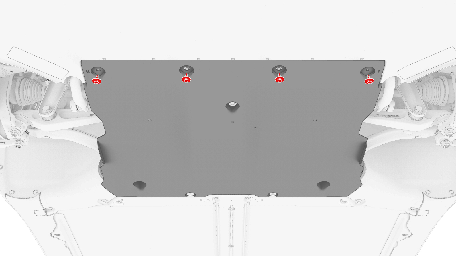 | Bolts (x4) that attach the valance to the front aero shield panel |
