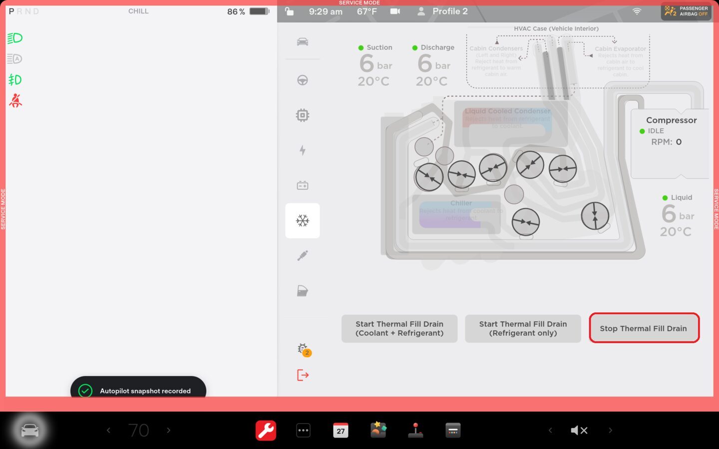 NoteWait until coolant pumps stop running (audible noise), Routine Passed will appear, but pumps will run for 10 minutes, If you start next another routine during this time, it will fail, Make sure vehicle is not in "Drive", Routine is still running despite the completed message, Idle speed = ~1500 RPM, Test will vary speeds from 3500-6500 RPM and actuate valves between SERIES and PARALLEL, Putting vehicle into "Drive" will stop this routine, If speeds hover at 7000 RPM, this indicates the pumps are air locked, perform a vacuum fill, Continue to add coolant and purge until the coolant level reaches between the NOM and MAX Lines on the bottle.