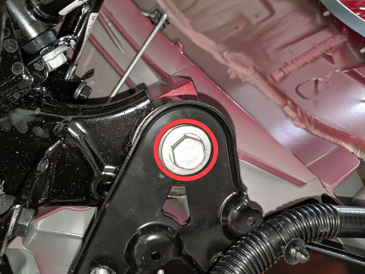 Note1x bolt, 16mm, 66 Nm, Lift up carpet for access.