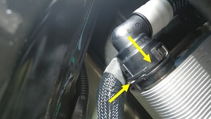 Release the clips (x3) to remove the rear drive unit coolant outlet hose from the