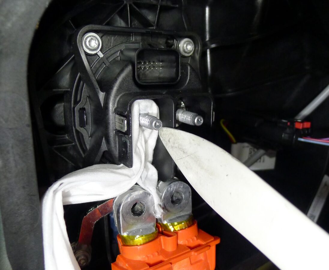 Perform Hioki resistance test at each HV joint from HV busbar lead to charge port stud