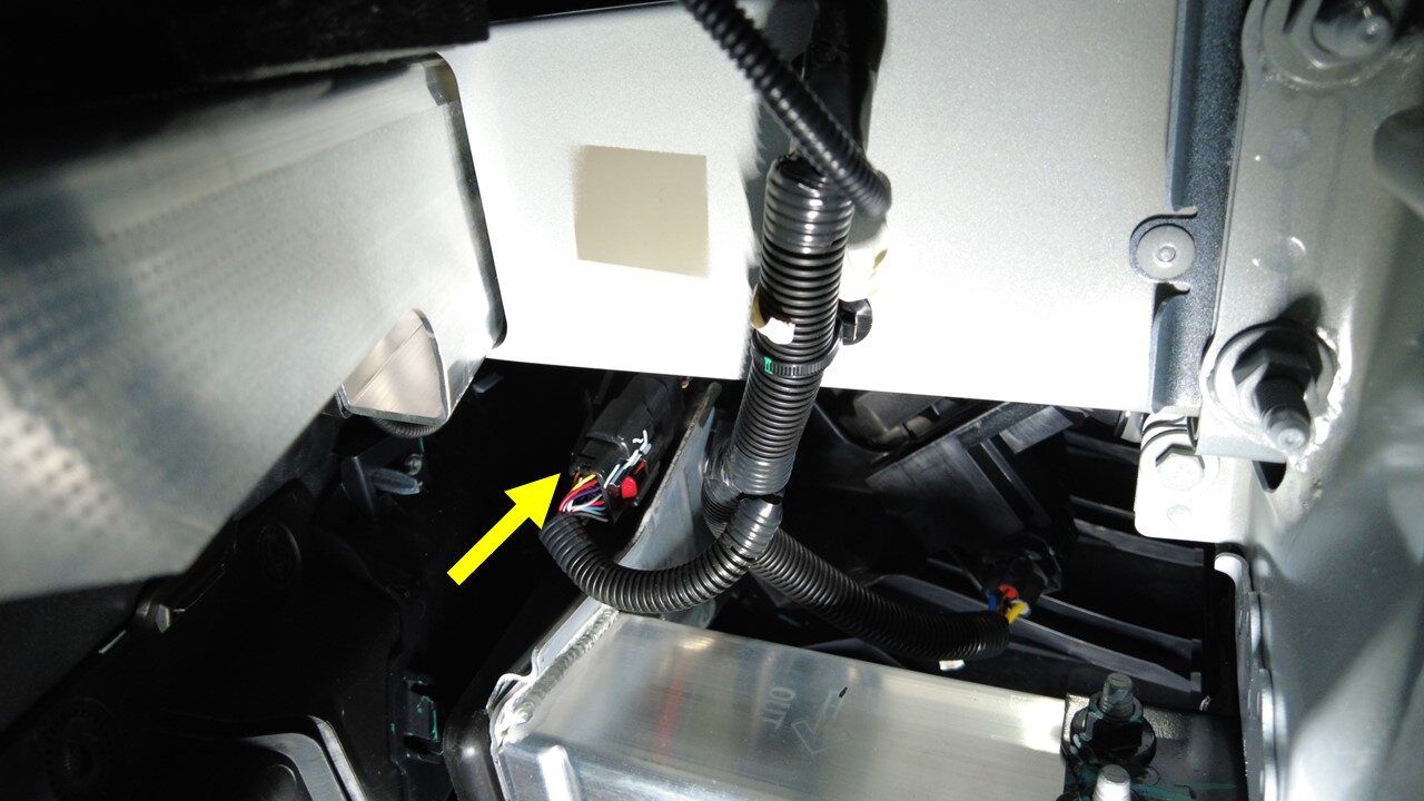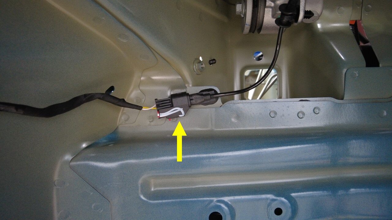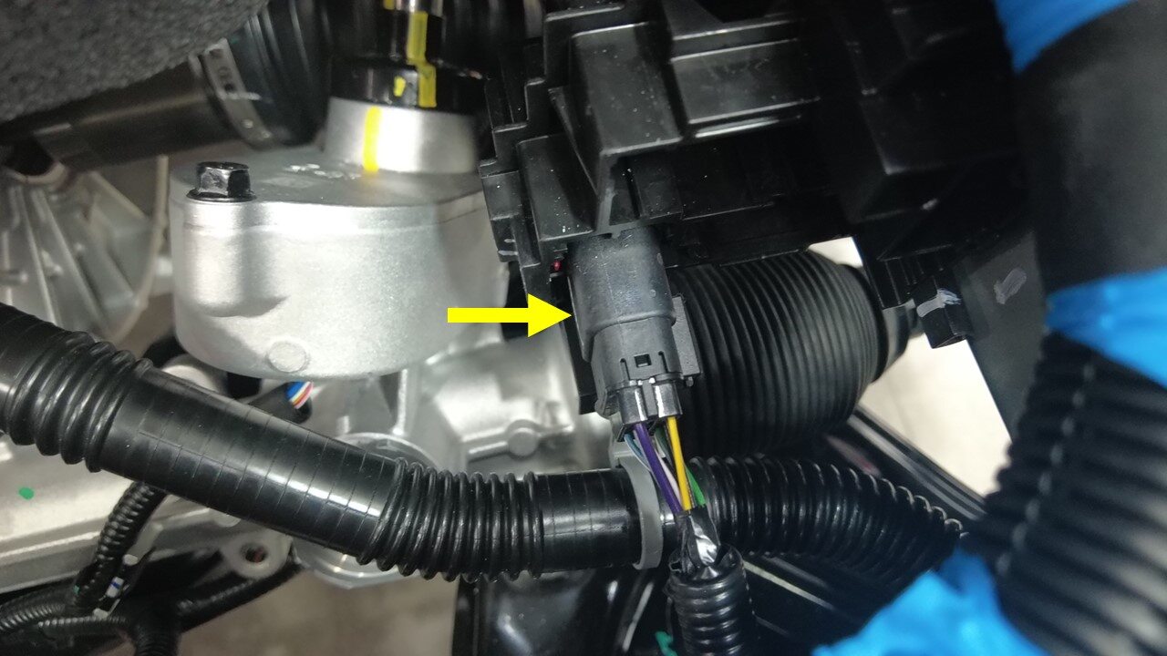 Note1x connector, Secure locking tabNoteOnly one connector may be present on early production vehicles.