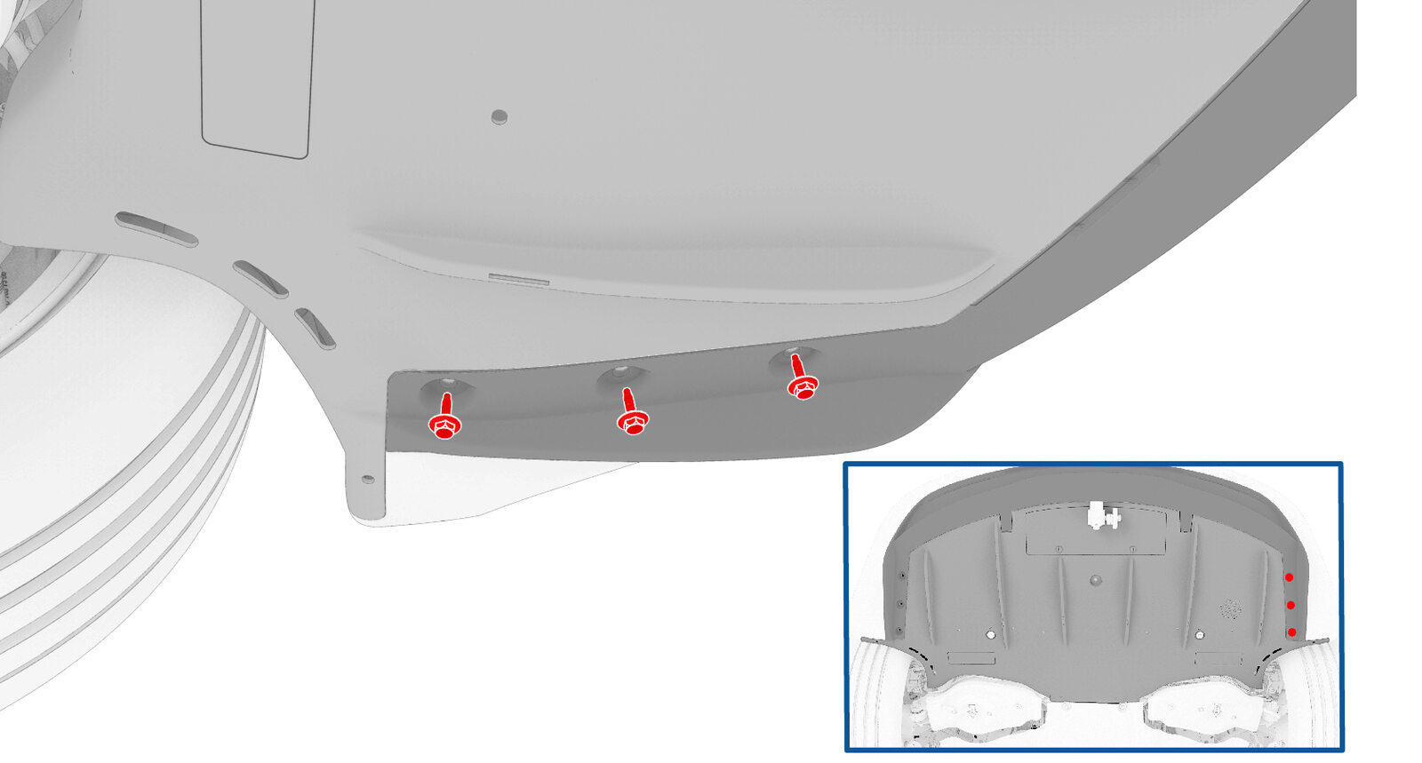 | Bolts (x6) that attach the rear fascia diffuser to the outer edge of the rear fascia |