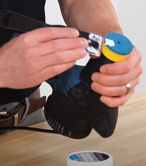 Re-pressurize the water feed bottle, and then repeat step 13 to finish polishing the windshield in the direction of the scratch.