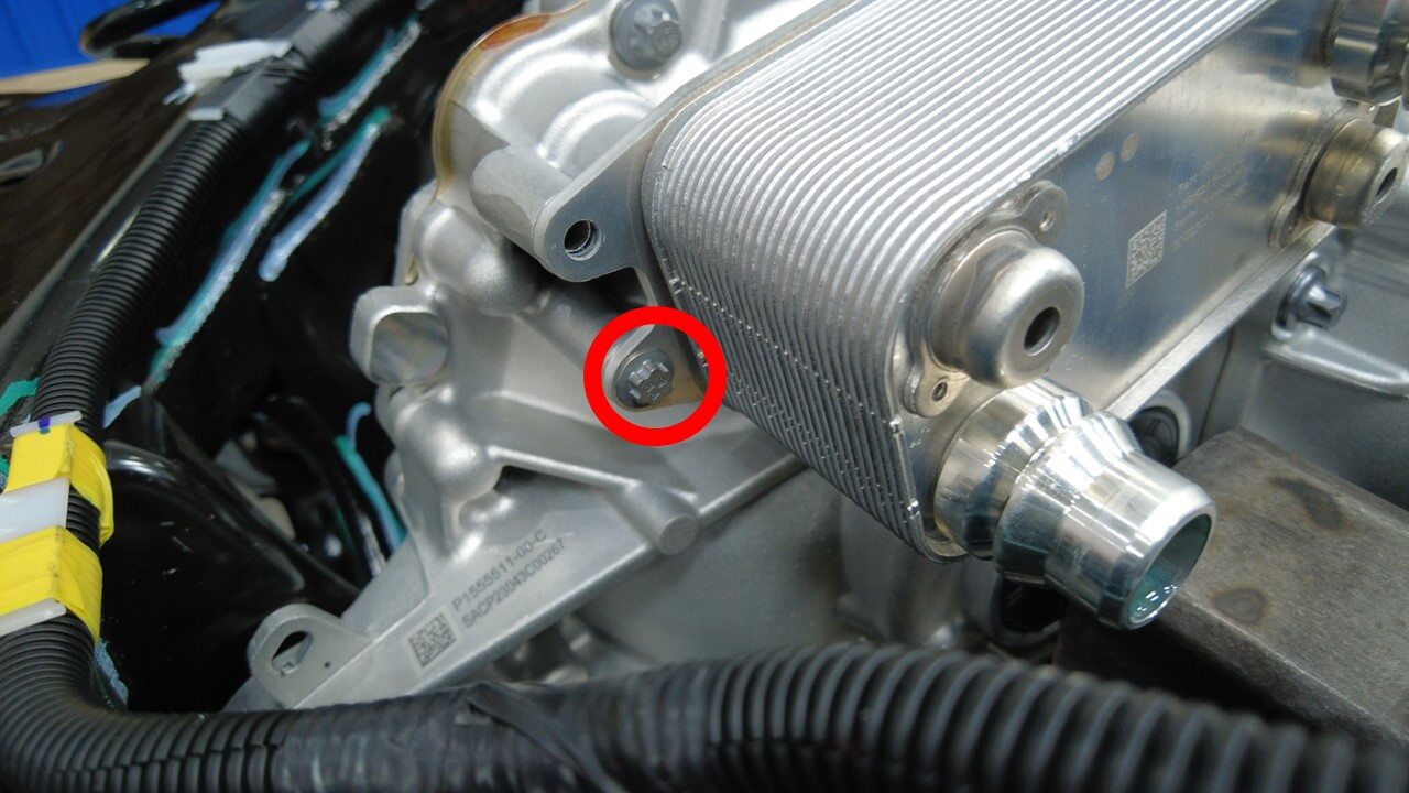 | Bolts (x2) that attach the rear drive unit heat exchanger to the rear drive unit |
