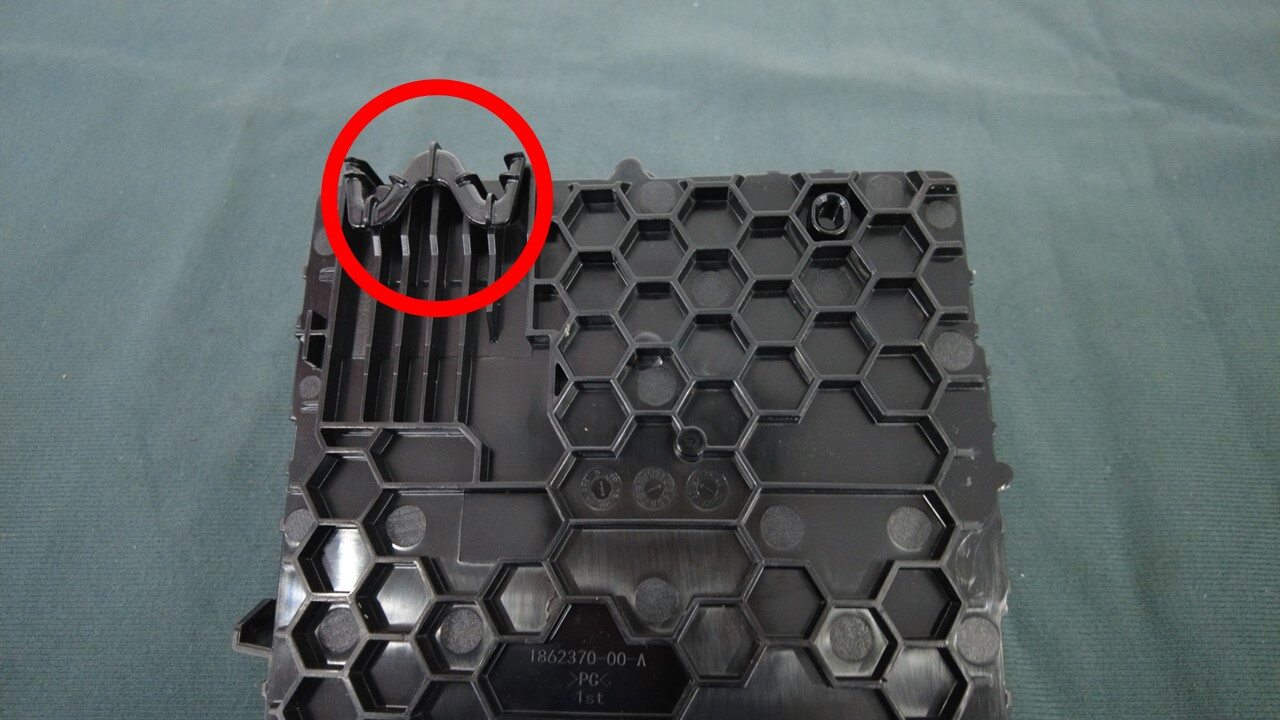 Note1x locator clip, 3x guide tabs, Pull outward then slightly upward to remove