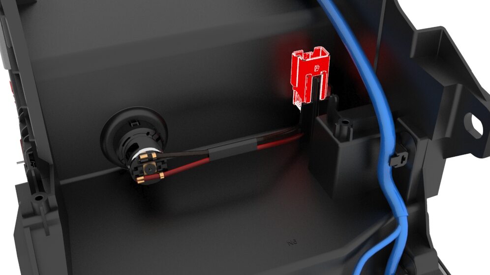 Note2x locking tabs, 1x Positioning slot, Install LV power outlet along the upper positioning slot, Ensure that the tabs are installed in place, Flip the center console as needed